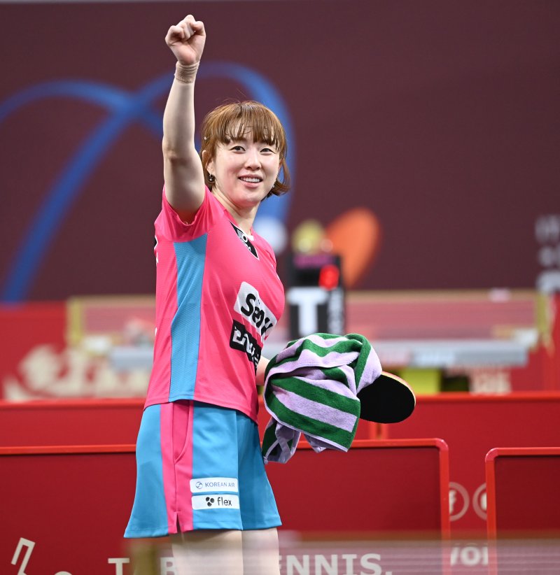 (도하(카타르)=뉴스1) 안영준 기자 = 여자 탁구 '베테랑' 서효원(한국마사회)이 자신의 마지막 세계탁구선수권 첫 경기서 21살 차 선수에게 극적인 역전승을 거뒀다. 은퇴를 예고했던 그는 "금메달 따면 은퇴하지 않고 다음 올림픽을 준비하겠다"며 유쾌하게 자신감을 내비쳤다.