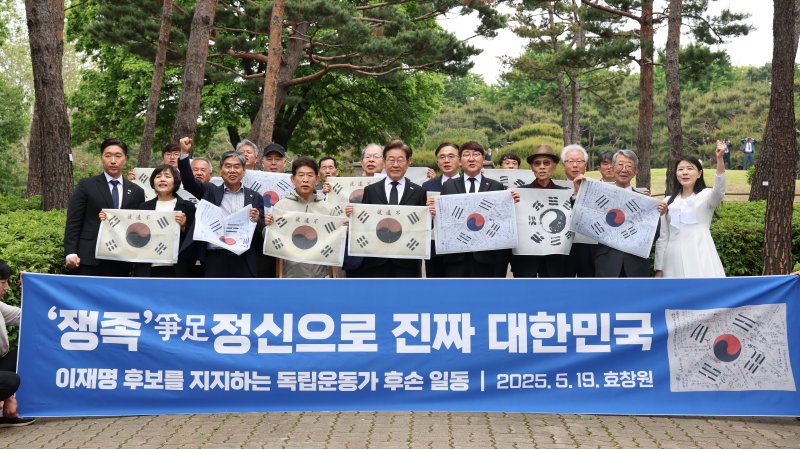 '이재명 후보를 지지하는 독립운동가 후손 일동'은 이날 오전 "새 대통령을 뽑는 선거는 역사 쿠데타를 끝내는 출발점이 돼야 한다. 그러한 기대에 어울리는 후보는 이재명 후보라 확신한다"며 이같이 밝혔다.