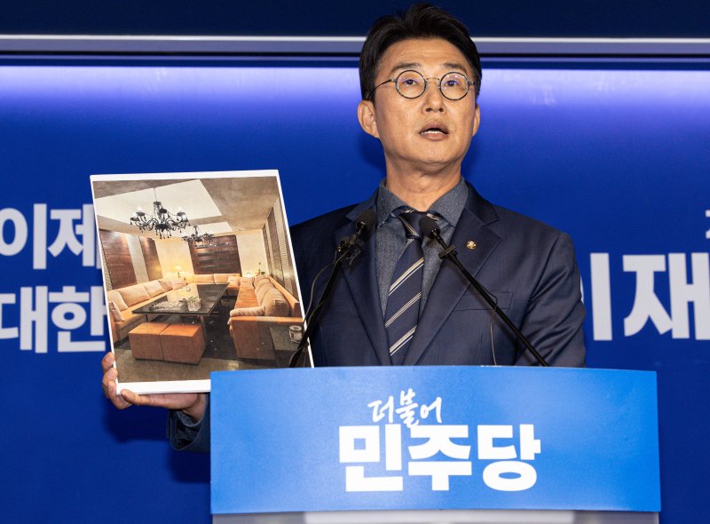(서울=뉴스1) 윤다정 김일창 임윤지 한병찬 기자 = 더불어민주당이 윤석열 전 대통령의 '내란 우두머리' 혐의 오후 공판 속개 25분 전인 19일 오후 재판장인 지귀연 부장판사의 '룸살롱 의혹' 사진을 공개했다. 지 부장판사는 이날 민주당의 사진 공개에 대한 추가 입장 표명은 없었다.