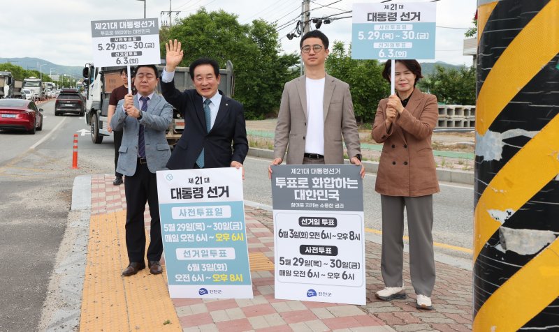 (진천=뉴스1) 이성기 기자 = 송기섭 충북 진천군수는 오는 6월 3일 진행하는 21대 대통령선거에 앞서 군민의 적극적인 투표 참여를 독려하는 투표 참여 캠페인을 벌였다.