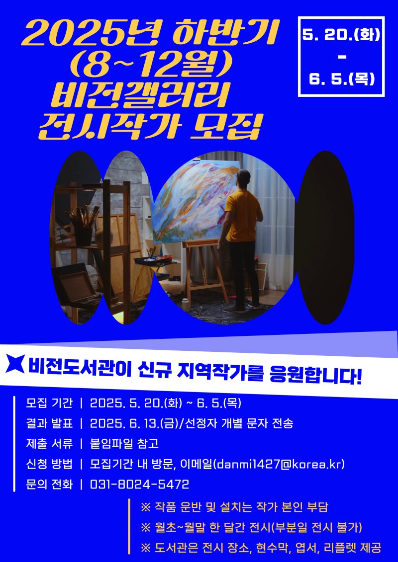 [평택=뉴시스] 정숭환 기자 = 경기 평택시립 비전도서관은 내달 5일까지 올해 하반기 '비전갤러리 전시 작가'를 모집한다고 20일 밝혔다.