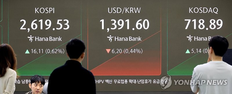 한편 같은 시각 코스닥은 전 거래일 대비 3.00p(0.42%) 오른 716.75에 거래되고 있다. 외국인과 기관이 각각 479, 435억원어치 순매수한 반면 개인이 495억원어치 순매도했다.