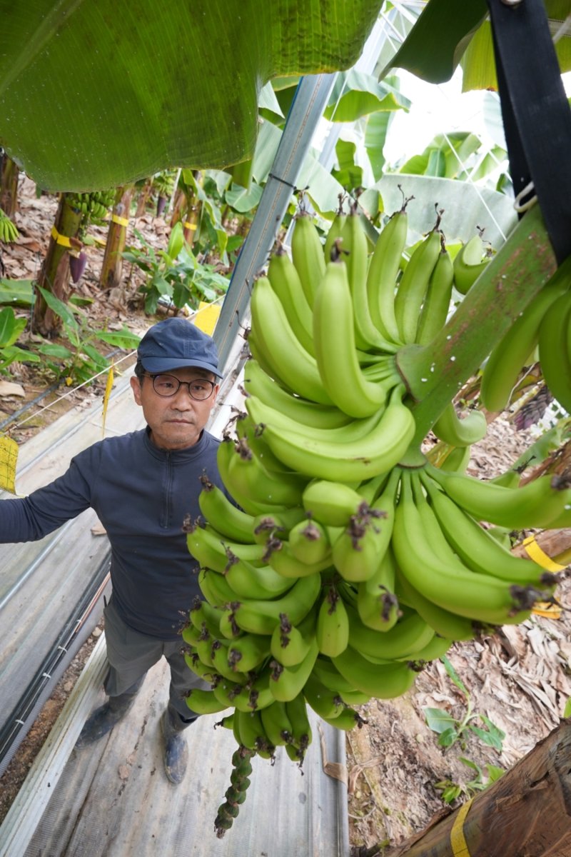 바나나는 정식 후 1년생부터 수확이 가능하며 생육이 좋을경우 보통 2년에 3회 정도 수확한다. 주로 친환경 학교급식이나 백화점 등지로 출하하는 상황이다.