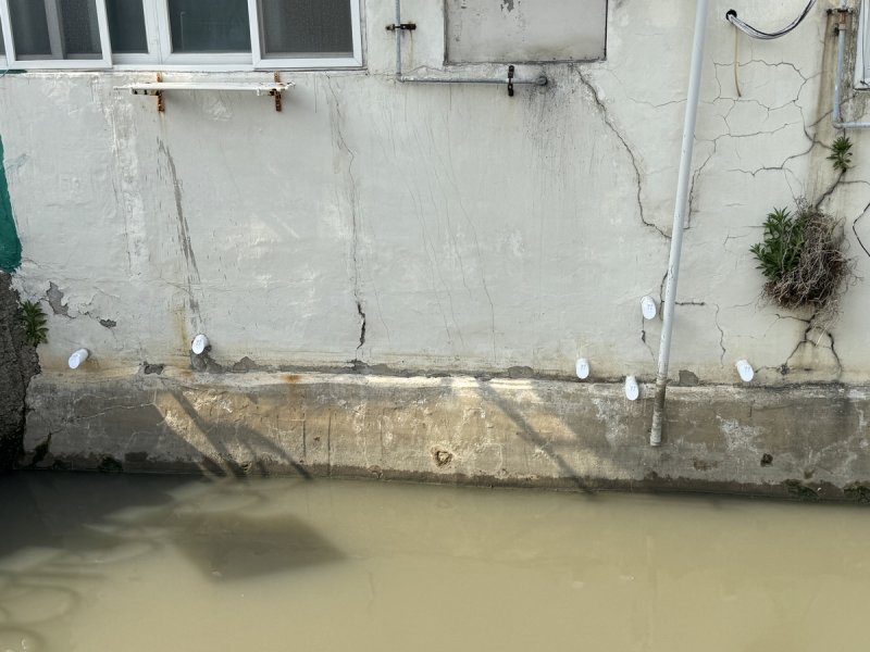 집중호우로 하천 수위가 상승할 때 하천수가 주거지의 PVC배관을 통해 역류했다.