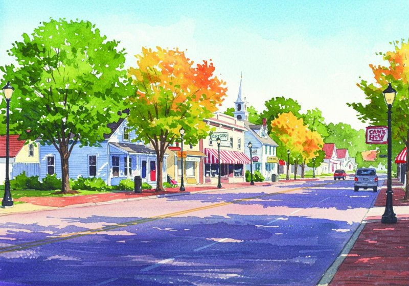 depot and a small white-steepled church.