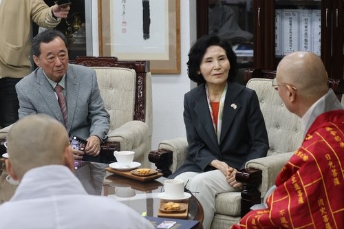 설 여사는 이날 오전 한국불교태고종 사찰인 종로구 법륜사를 찾아 총무원장 상진 스님을 예방하고 사회통합을 위한 태고종의 노력에 사의를 표했다고 국민의힘 선거대책위원회가 전했다.