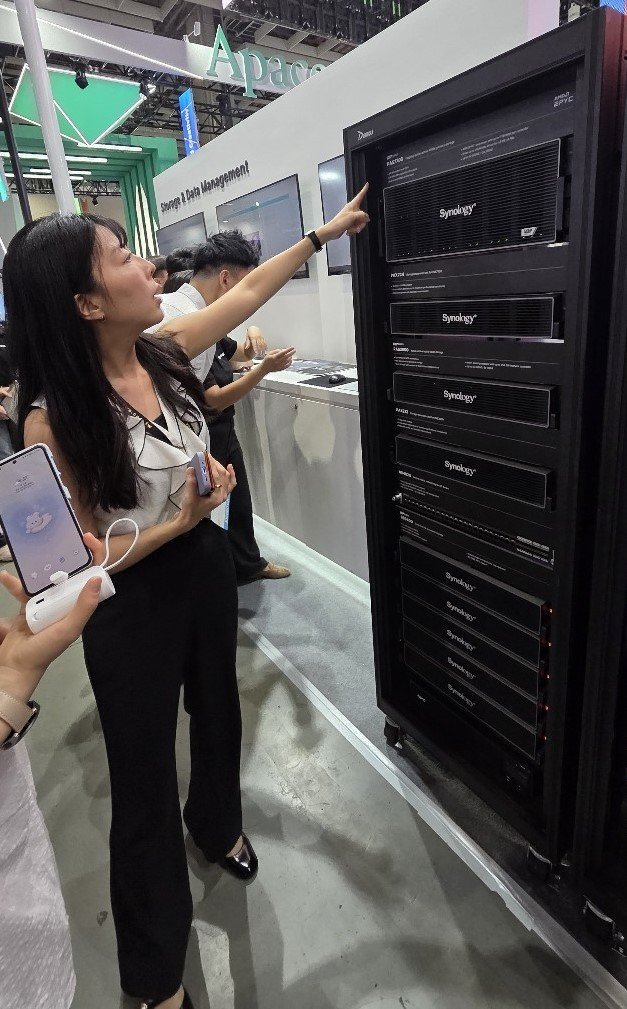 20일 시놀로지 전시관에서 만난 석미은 시니어 세일즈 매니저는 "올해 출시된 25 시리즈는 2.5GbE 네트워크를 전 모델에 기본 탑재해 성능과 호환성을 한층 높였다"며 "신제품은 가정용부터 중소기업·엔터프라이즈 환경 등에도 쉽게 최적화할 수 있다"고 설명했다.