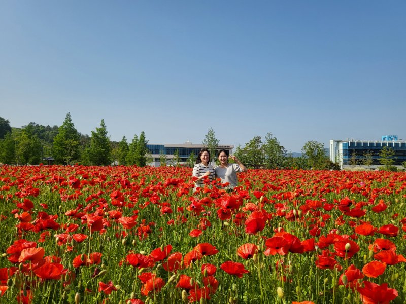 두메실파크 꽃양귀비 군락은 시 농업기술센터가 경관작물원에 조성한 4700㎡ 규모로 내달 초까지 꽃을 볼 수 있다.