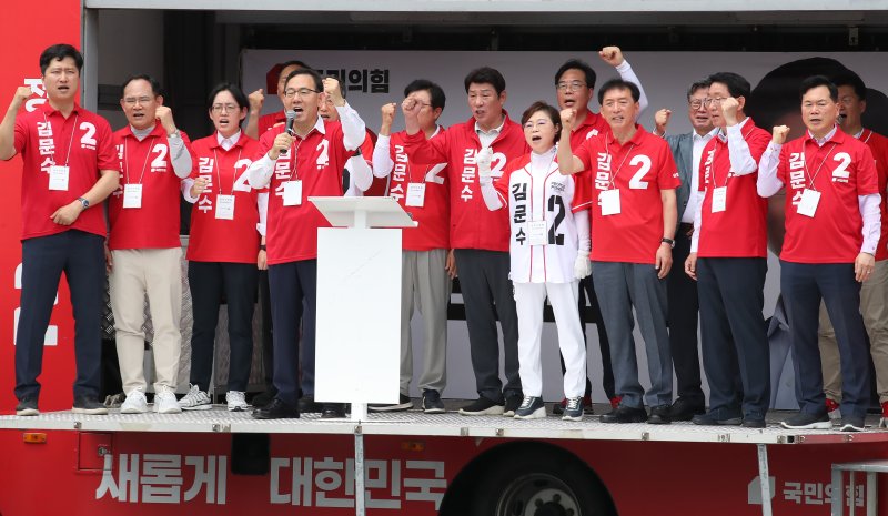 (대구=뉴스1) 남승렬 기자 = 국민의힘 대구·경북 선거대책위원회가 대통령 선거를 13일 앞둔 21일 대구에서 보수 표심 결집에 사력을 다했다.