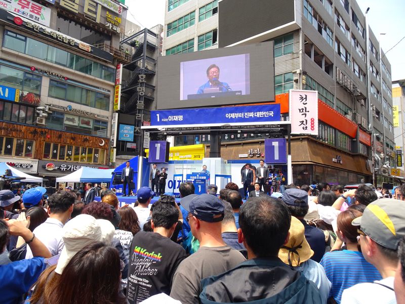 【파이낸셜뉴스 인천=한갑수 기자】 이재명 더불어민주당 대선 후보는 21일 인천 남동구 구월동로데오거리를 찾아 인천에서 첫 유세를 벌이며 시민에게 지지를 호소했다.