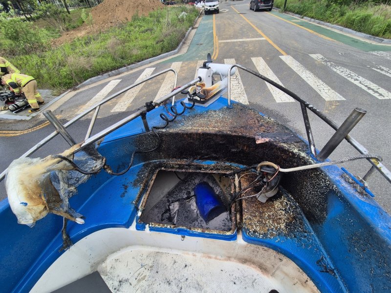 충남소방본부에 따르면 이 불로 보트안에 설치돼 있던 배터리가 소실되고 일부에 그을음이 생기는 등 120만 원의 재산피해가 발생했다