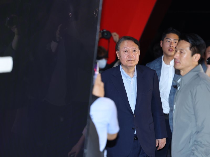 윤 전 대통령은 21일 서울 동대문구 한 극장에서 이영돈 PD와 전직 한국사 강사 전한길 씨가 제작한 다큐멘터리 영화 '부정선거, 신의 작품인가'를 관람했다. 지난 4월 4일 파면 이후 첫 공개 행보다.