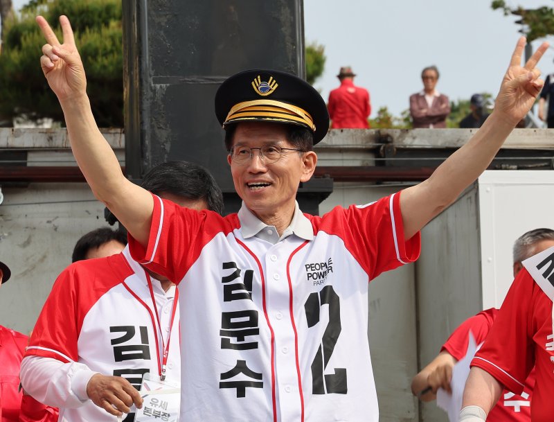 [서울·파주=뉴시스] 이승재 윤현성 우지은 기자 = 김문수 국민의힘 대선 후보는 21일 사흘째 수도권에 머무르면서 표심 공략에 집중했다. 이재명 더불어민주당 대선 후보의 '방탄유리 유세' 겨냥해서는 "저는 경호원을 다 돌려보냈다. 국민이 저를 지켜주실 것"이라고 밝혔다.