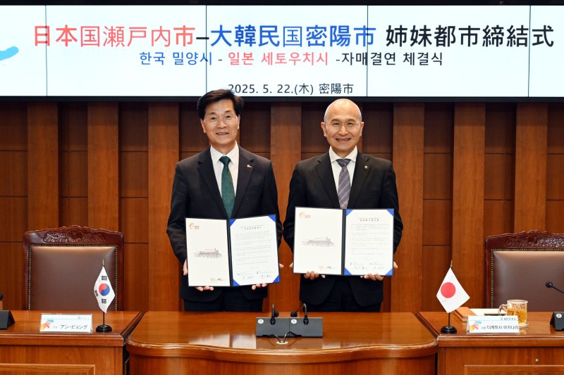 (밀양=뉴스1) 박민석 기자 = 경남 밀양시가 일본 오카야마현 세토우치시와 자매도시 결연을 맺었다.