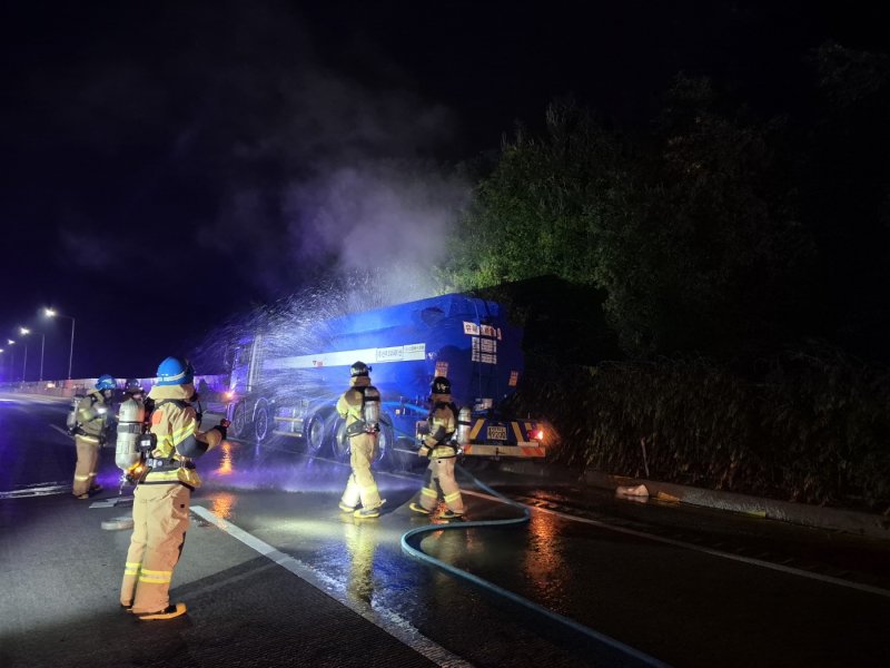 고속도로순찰대는 곧바로 사고 현장 차량 출입을 통제하고 소방당국은 소방차 등 15대와 대원 등 46명을 투입해 방제에 나섰다.