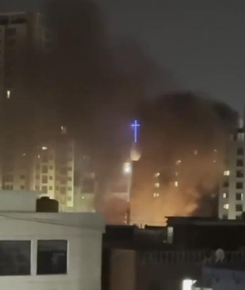 (의정부=연합뉴스) 최재훈 기자 = 23일 오전 경기 의정부시의 오피스텔 건물에서 방화로 추정되는 화재가 발생해 경찰이 수사 중이다.