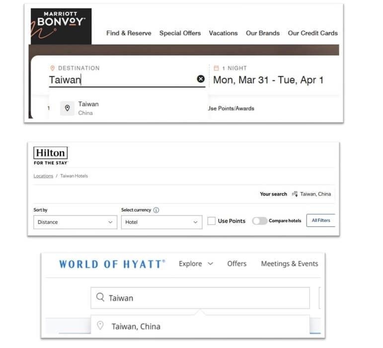 의원들은 또한 이들 호텔기업이 '대만, 중국'이라는 표현을 사용하기 시작한 시기가 언제이고, 그러한 결정을 내리는 데에 중국 정부의 영향을 받았는지에 관해 정보를 요청했다.