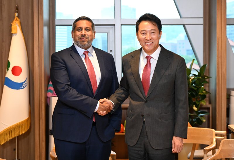 (서울=뉴스1) 한지명 기자 = 오세훈 시장이 23일 오전 시장이 빌라스 다르 패트릭 J. 맥거번 재단 대표와 만나 서울의 AI·스마트도시 정책에 대해 의견을 나눴다.