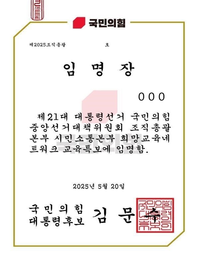 전북교총에 따르면 국민의힘 측은 지난 21일 오전 10시께 도내 교원들에게 사전 동의 없이 성명과 연락처 등이 포함된 개인정보를 사용해 '시민소통본부 희망교육네트워크 교육특보' 임명장이라는 제목의 문자메시지를 일괄 발송한 것으로 파악됐다.