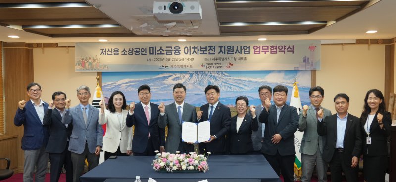 [제주=뉴시스] 양영전 기자 = 제주도는 SK미소금융재단과 저신용·저소득 소상공인의 대출금리를 낮추는 이차보전 지원사업을 추진하는 내용의 업무협약을 체결했다고 23일 밝혔다.