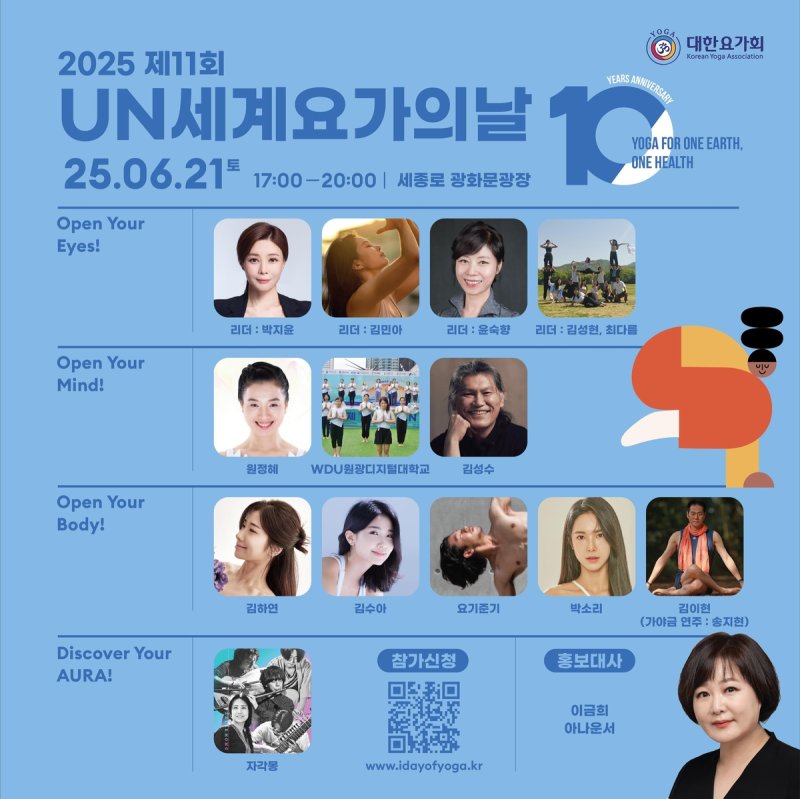 이금희 아나운서는 "요가는 몸과 마음을 들여다보는 시간이자 치유의 여정"이라며 "광화문광장에서 많은 시민과 함께 따뜻한 에너지로 연결되길 바란다"고 희망했다.