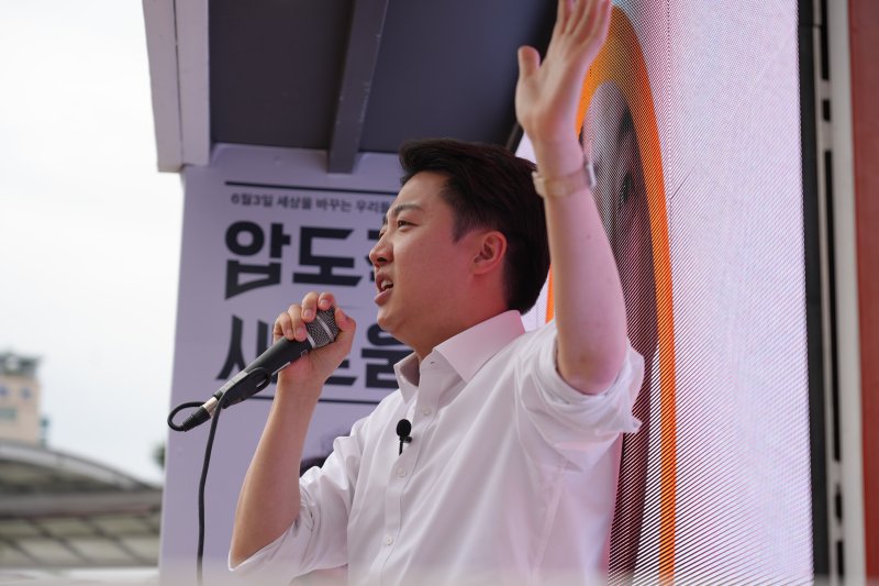 [서울=뉴시스]하지현 기자 = 이준석 개혁신당 대선 후보는 24일 김문수 국민의힘 후보와 이재명 더불어민주당 후보를 겨냥해 "내란 세력과 환란 세력 모두 대한민국의 선택지가 돼서는 안 된다"며 "현명한 국민들께서 내란·환란 세력 모두 거부해 주시길 부탁드린다"고 호소했다.