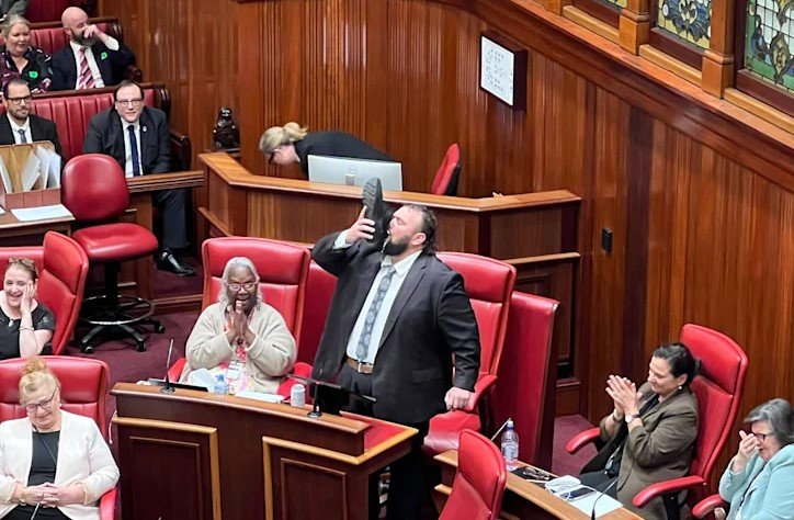 [서울=뉴시스]홍주석 인턴 기자 = 자신의 퇴임식이 열리는 의회에서 이른바 '신발주'를 마신 한 호주 서부 주의회 의원이 화제다.