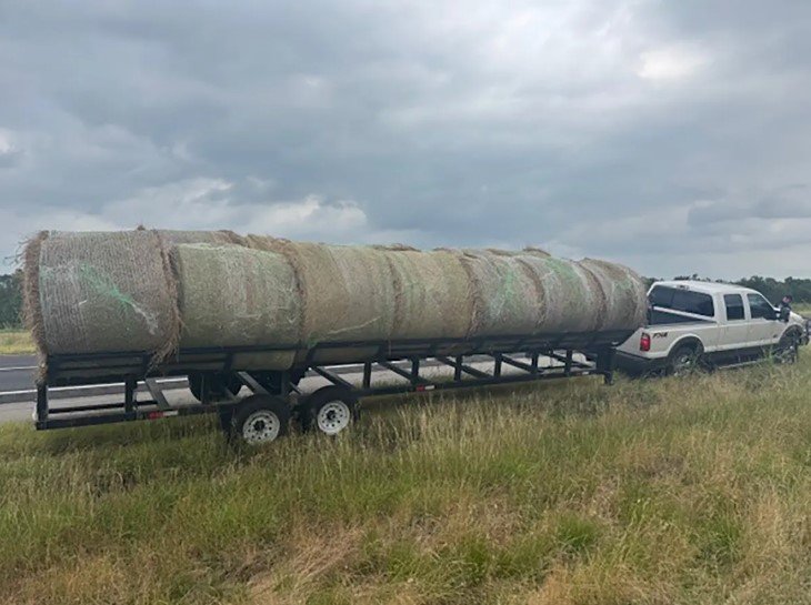 경찰은 이날 오후 1시께 트레일러에 여러 개의 거대한 건초 더미를 견인하는 픽업트럭을 발견했다.