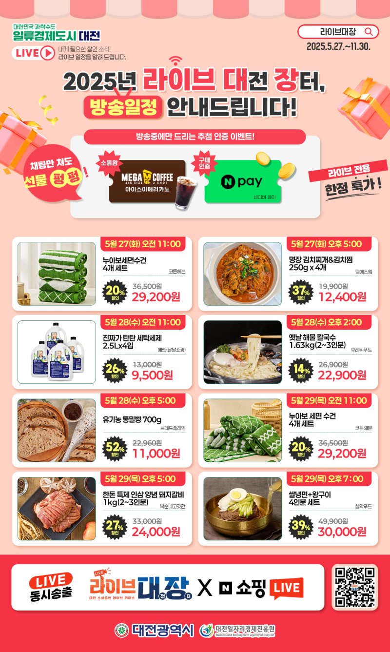 이 사업은 실시간 영상 스트리밍과 전자상거래가 결합된 대전형 라이브커머스 플랫폼 '라이브 대장'을 통해, 지역 소상공인의 우수 제품을 효과적으로 홍보하고 실질적인 매출 향상을 유도하기 위한 것이다. 총 35개 선정 업체가 순차적으로 참여해 제품의 경쟁력과 스토리를 실시간으로 소개할 예정이다.