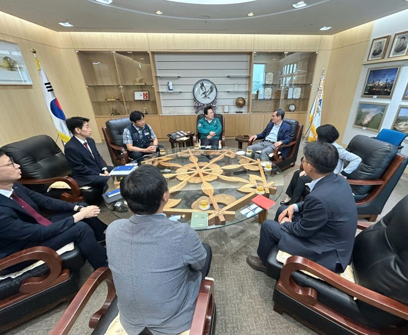 【파이낸셜뉴스 강릉=김기섭 기자】김홍규 강릉시장이 26일 경남 진주시에 위치한 한국토지주택공사(LH) 본사를 방문, 천연물바이오 국가산업단지 기본협약 및 예비타당성 조사 신청 경과 등 주요 추진사항을 논의했다.