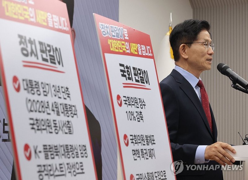 국민의힘은 정치 판갈이를 위한 공약으로 대통령 임기 3년 단축 개헌을 제안했다.