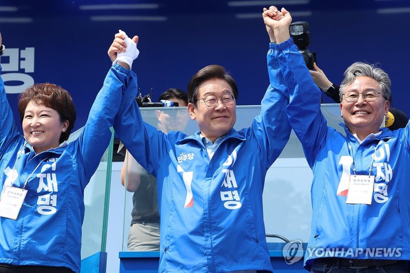 (서울·수원·용인=연합뉴스) 임형섭 홍준석 기자 = 더불어민주당 이재명 대선 후보는 6·3 조기 대선을 약 일주일 앞둔 26일 경기 수원·용인·남양주시를 돌며 지지를 호소했다.