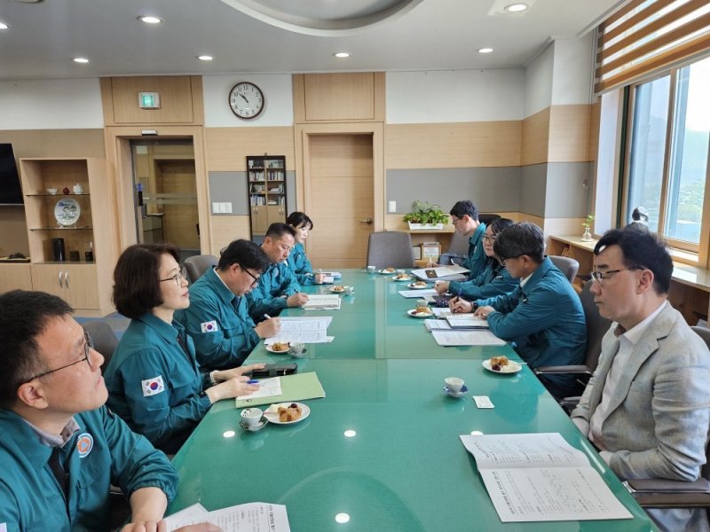 (대전ㆍ충남=뉴스1) 박찬수 기자 = 이미라 산림청 차장이 27일 하동군청에서 하승철 하동군수와 지난 3월 발생한 하동 산불피해지 복구 방안에 대해 논의했다.