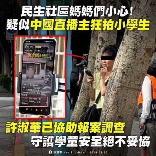 (타이베이=연합뉴스) 김철문 통신원 = 대만 초등학교 인근에서 라이브 방송을 진행해 논란을 일으켰던 50대 중국 여성이 비밀방해죄 등으로 처벌받을 것으로 전망된다고 중국시보 등 대만언론이 27일 보도했다.