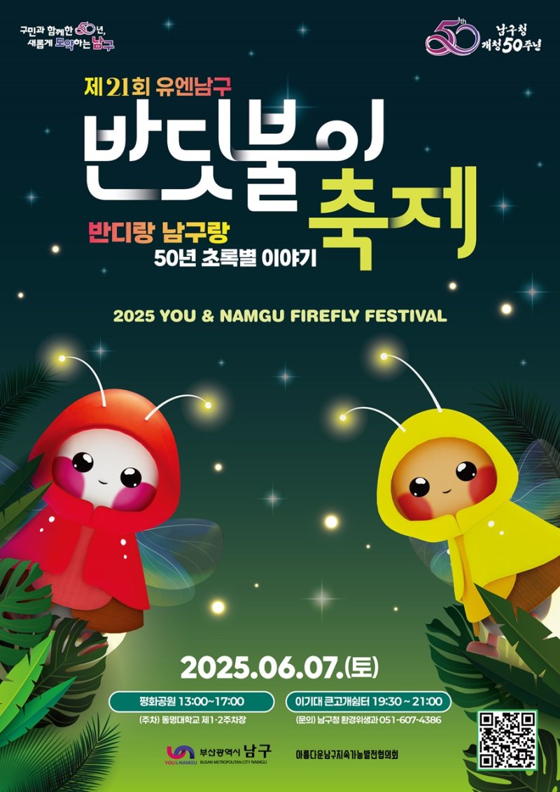 구는 개청 50주년을 맞아 '반디랑 남구랑 50년 초록별 이야기'를 주제로 다가올 50년과 반딧불이, 구가 함께 빛나는 공존과 미래에 대한 이야기를 축제에 담는다.