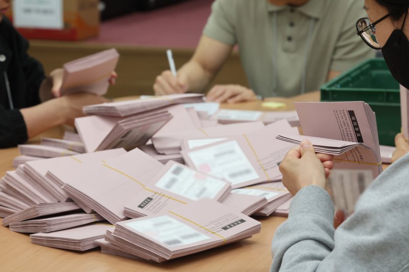 [인천공항=뉴시스] 김선웅 기자 =제21대 대통령선거를 일주일 앞둔 27일 인천국제공항 국제우편물류센터에서 우정사업본부 직원들이 국내로 회송된 재외투표지를 확인하고 있다.중앙선관위는 외교부, 우정사업본부와 합동으로 118개국 223개 재외투표소에서 외교행낭을 통해 국내로 회송된 재외투표지를 확인·분류하여 구·시·군선관위로 발송한다. (공동취재) 2025.05.27. photo@newsis.com [서울=뉴시스] 류현주 기자 = 제21대 대통령선거 재외투표지가 국내로 회송됐다.