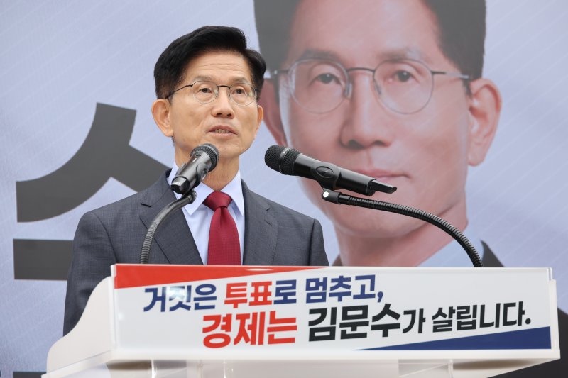 (서울=뉴스1) 박기범 박기현 기자 = 김문수 국민의힘 대통령 후보는 30일 "경제를 살리기 위해 이재명을 막아야 한다"며 지지를 호소했다.