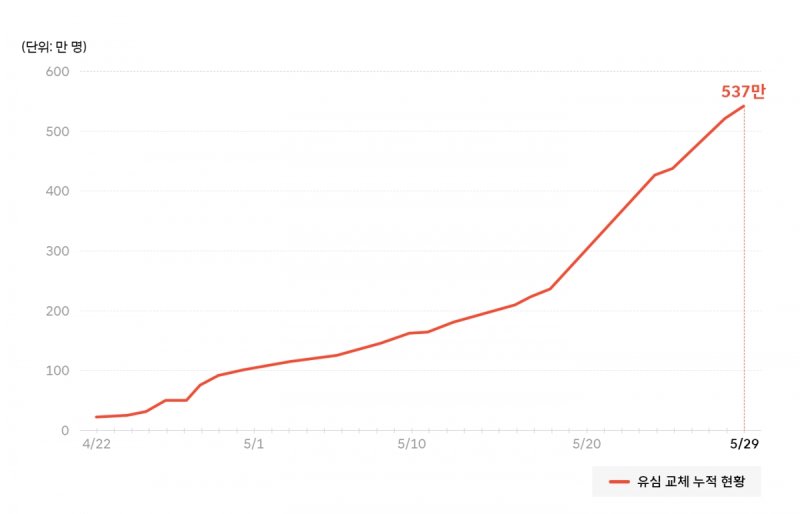 앞서 유상임 과학기술정보통신부 장관은 지난 28일 SK텔레콤의 영업 재개 시점을 확인하는 취재진 질문에 "SK텔레콤 이용자 전부는 아니더라도 물리적 유심 교체를 원하는 800만명에 대해서는 전부 만족시켜야 할 것"이라는 입장을 밝혔다.