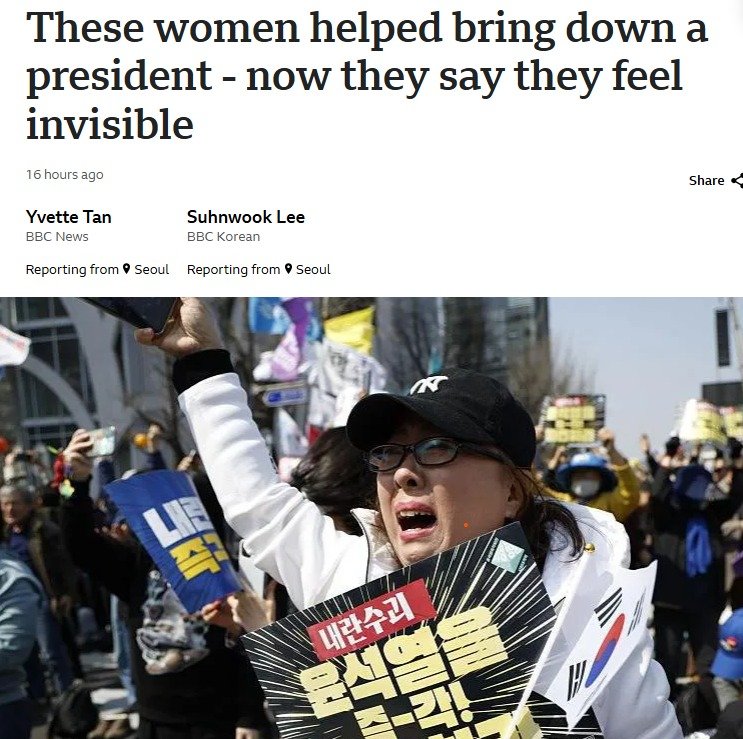 이에 따라 윤석열 탄핵에 앞장섰던 이대녀들이 상대적 박탈감을 느끼고 있다고 BBC는 전했다.