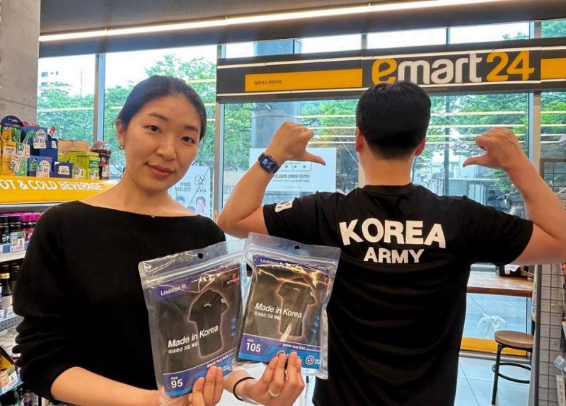 이마트24는 또 대한민국 육군의 영어 약칭 'ROKA'(Republic of Korea Army)가 새겨져 있고 태극기가 부착된 티셔츠도 판매한다.