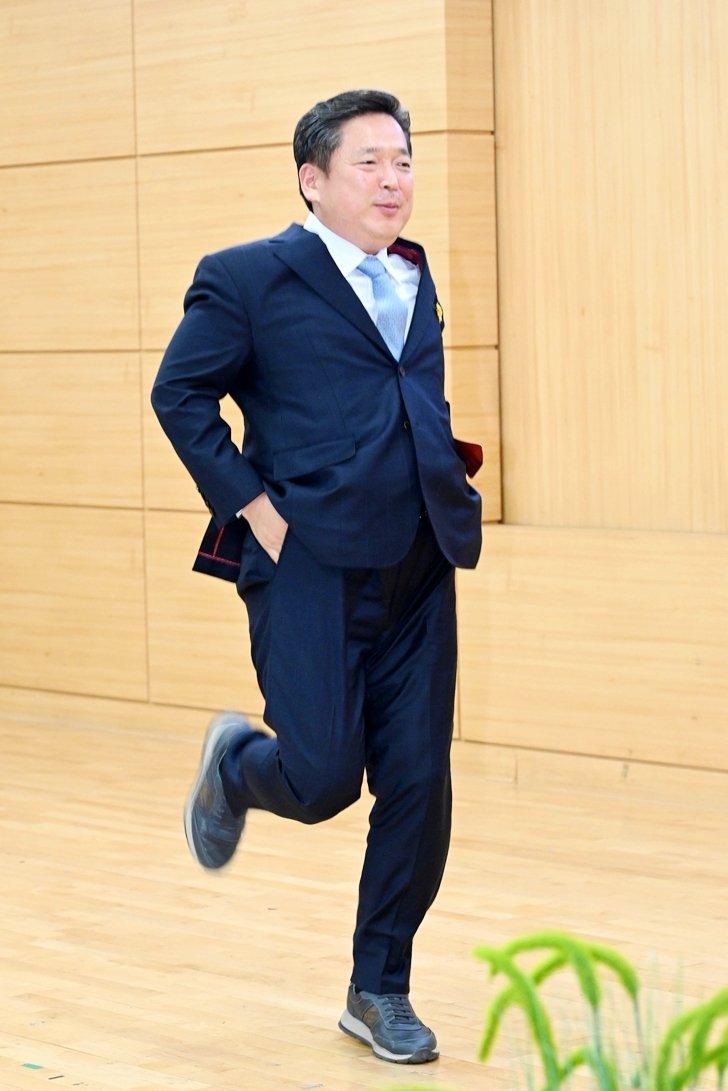 김 구청장은 4일 오전 구청사에서 열린 남구 가족소통·공감의날 행사를 마친 뒤 30여초간 셔플댄스를 췄다.