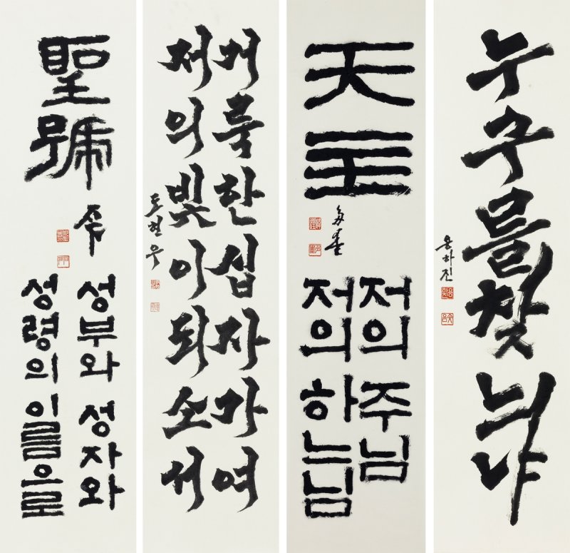서예가이며 미술품감정학 박사인 이동천 선생의 지도를 받은 이들 네 신부는 개성 있고 힘 있는 필체로 가톨릭 신앙을 표현했다.