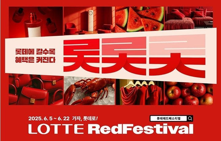이날부터 22일까지 진행되는 레드페스티벌은 롯데백화점·롯데마트 등 롯데 유통 7개 계열사가 함께 온·오프라인 쇼핑 혜택을 마련하는 행사다.
