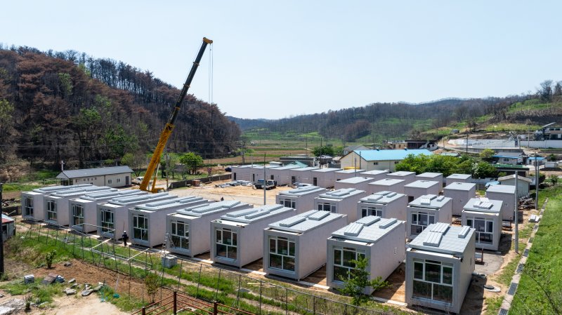 산불 피해 5개 시군의 임시 조립주택 물량은 2495동으로 3일 현재 79.2%인 1977동이 완공됐다.