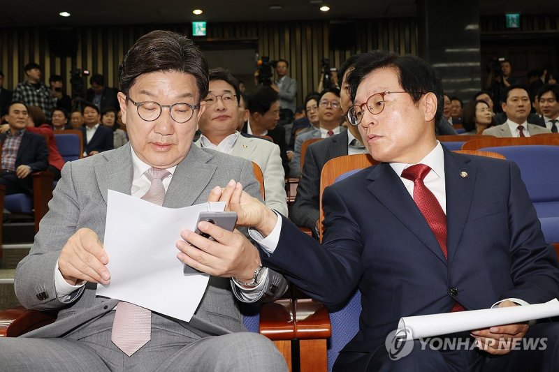 권성동 원내대표는 이날 의원총회에서 민주당이 새 정부 출범 후 첫 본회의에서 내란·김건희 여사·채해병 특검법과 검사징계법 처리를 시도하는 것을 두고 "과연 이것이 새 정부 1호 법안이어야만 했는가, 그런 안타까움이 든다"고 했다.