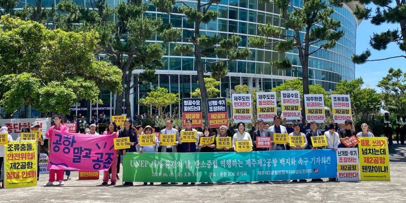 이어 "세계 환경의 날을 개최하고 있는 이곳 제주에서, 기후위기와 생물다양성 손실을 더욱 심화시킬 제2공항 개발 계획이 강행되고 있다는 사실은 매우 큰 모순"이라고 지적했다.