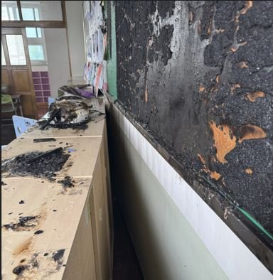 불은 교실 내부를 일부 태운 뒤 10여분 만에 꺼졌으며 현재까지 다친 사람은 없다.