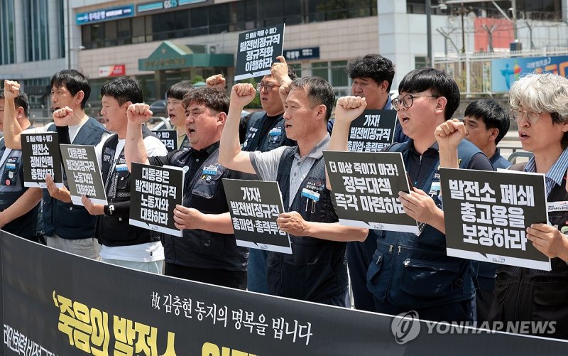 (서울=연합뉴스) 정윤주 기자 = 전력 발전소 비정규직 노동자들은 정부가 고(故) 김충현씨 사망 관련 대책을 마련하지 않을 경우 올여름 공동파업으로 맞서겠다고 선언했다.