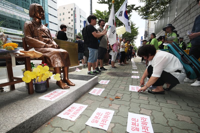 (부산=뉴스1) 장광일 기자 = 평일에 부산 일본영사관 앞 소녀상 철거 요구 집회를 금지한 경찰의 처분이 적법하다는 법원 판결이 나왔다.