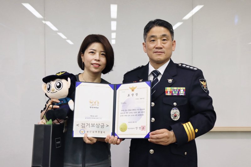 부산남부경찰서는 최근 모바일 상품권을 무단 사용한 피의자 검거에 기여한 마트 직원 A씨에게 표창장과 신고보상금을 전달했다고 10일 밝혔다.